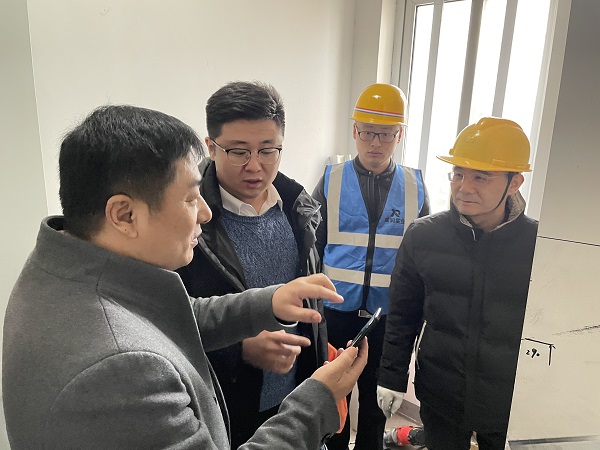 隨后,考察團一行親臨西咸新區灃西新城“高樓應急安全逃生智聯系統”升級項目施工現場。施工現場正在安裝高樓應急專用軌道。