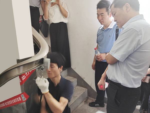 在觀摩項目投入使用社區(qū)時,專業(yè)技術(shù)人員對高樓應(yīng)急自救裝置、高樓應(yīng)急專用軌道、位置追蹤設(shè)備及智能APP管理平臺等物聯(lián)網(wǎng)應(yīng)用平臺及相關(guān)硬件設(shè)備進行了細致講解。