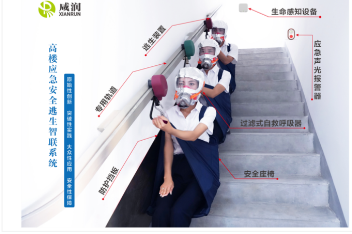 “高樓應(yīng)急安全逃生智聯(lián)系統(tǒng)”項(xiàng)目,可有效解決高層建筑及各類人員密集場(chǎng)所內(nèi)涉險(xiǎn)人員的群體性緊急疏散難題, 在傳統(tǒng)“防、消、救”的層面上,增加了“逃”的功能。當(dāng)發(fā)生火災(zāi)等緊急情況時(shí),第一時(shí)間實(shí)現(xiàn)聯(lián)動(dòng)報(bào)警,百米高層3分鐘快速逃生,高效有序撤離至地面安全地帶。同時(shí)結(jié)合物聯(lián)網(wǎng)+功能,對(duì)樓內(nèi)人員進(jìn)行生命探測(cè)、位置追蹤,為消防隊(duì)員提供精準(zhǔn)救援信息,將主動(dòng)自救互救和協(xié)同組織救援緊密結(jié)合,有效提高救援全過(guò)程質(zhì)效,降低人員密集場(chǎng)所群死群傷重特大火災(zāi)事故的發(fā)生幾率,扭轉(zhuǎn)重特大事故多發(fā)被動(dòng)局面,減少人員傷亡及財(cái)產(chǎn)損失,全方面保障人民生命財(cái)產(chǎn)安全,填補(bǔ)人員密集場(chǎng)所緊急疏散基礎(chǔ)設(shè)施建設(shè)空白。