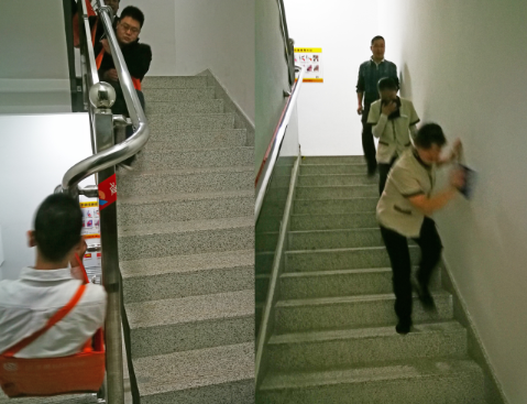 考察組一行來到西咸新區灃西新城總部經濟園5號樓“高樓應急安全逃生系統”應用現場,兩組人員模擬從9層樓頂層應急逃生的場景,一組5人走安全通道,另一組5人穿戴“高樓應急安全逃生系統”逃生。最終,走安全通道逃生的單人用時最少兩分鐘,而使用“高樓應急安全逃生系統”逃生的單人用時最少59秒。而且,據了解高樓樓層越高“高樓應急安全逃生系統”的優勢越明顯。