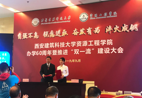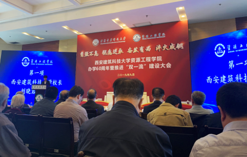 9月16日上午,西安建筑科技大學資源工程學院召開辦學六十周年暨推進“雙一流”建設大會。陜西省人大常委會原副主任桂中岳,西安建筑科技大學校長劉曉君,副校長張健,陜西咸潤實業發展有限公司等校企戰略合作簽約單位代表參加,在場500余人見證了西安建筑科技大學資源工程學院揭牌重建這一歷史時刻!