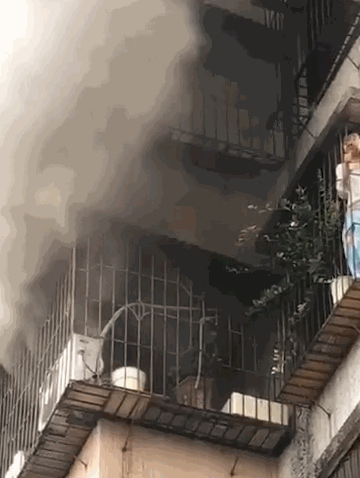 四川達州一居民樓突發大火,女子被困陽臺拼命搖晃防盜窗呼救……