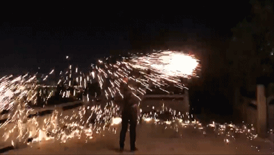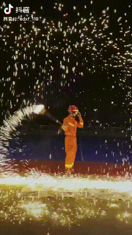 可以看到隨著不斷揮動(dòng)迸發(fā)出的火星