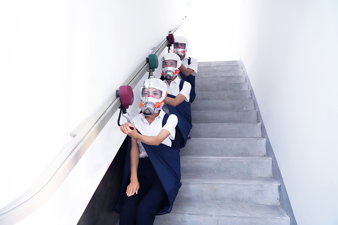 安全座椅內(nèi)置電子定位芯片,與樓梯通道內(nèi)安裝的專用設(shè)備實現(xiàn)逃生過程中的位置追蹤,座椅采用B1級防火材料,背部內(nèi)嵌反光箔膜,便于識別濃煙中的逃生者。